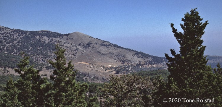 The koinotis of Ayios Ioannis consisted of two villages separated by low hills, Agios Ioannis and Aradena. They are both situated on a high plateau overlooking the Libyan Sea to the south, where the distant islands of Gavdos and Gavdopolos could be seen on clear days. The coast line was the southern border of the koinotis; the ancient chapel of Agios Paulos and a shepherd´s hut were the only structures found along its lonely length. Looming above the foothills to the north of the two villages was the southern wall of the Lefka Ori range, distinguished by the two peaks of Zaranokefala and Thodoris, both over 2000 meters in height.