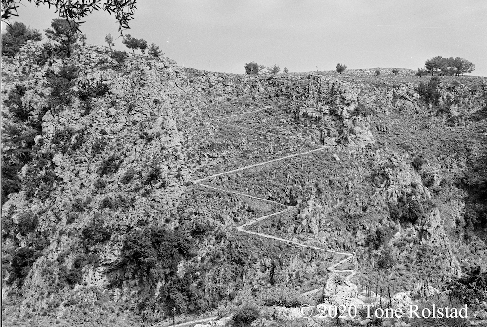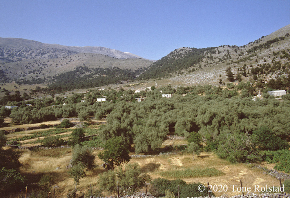In the late 70s and the early 80s my husband and I spent more than a year living in Sfakia. At that time Agios Ioannis was a small and isolated village with a population of 55 people (January 1979). It was considered one of the most isolated villages in Crete with a year-round population, and this was what attracted us. Only one household had a telephone and there was no electricity or running water. The village was connected with the surrounding area by a network of foot paths, but the many ravines made walking long and difficult. The spectacular Gorge of Aradena, 100 meters deep, separated the koinotis (township) of Ayios Ioannis from Anopolis and was the main reason why a road had never reached the village. All the traffic had to cross the gorge by using an old zig-zag path. To catch the only bus from Anopolis you had to do the 3 – 4 hours walk in the dark, go down and up the gorge and avoid the vicious dogs in Anopolis.