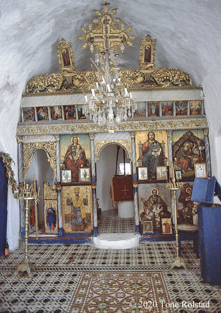 The old church of the village patron saint, Agios Ioannis, shared its space with that of the slightly smaller Khristos, which in fact formed one half of the same building – one long wall of the older church had been removed, and the parallel nave of Khristos was added, with its own separate altar.