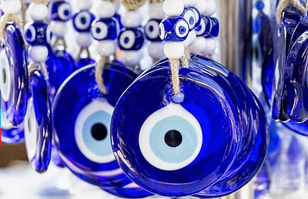 Belief in the evil eye (to kako mati) is found all around the Mediterranean, and is believed to be one of the oldest continous belief constructs in this area. It is recognised that a possesser of “the eye” may cast it inadvertently, without malice. In other cases envy is very much thought to be present. To protect oneself from the evil eye people wear crosses, blue “eye” beads or other charms. Charms are placed on the saddles of donkeys and mules, and often the houses are painted blue and white, the colours of protection against the evil eye. Both people, animals, plants and non-living objects can be affected.