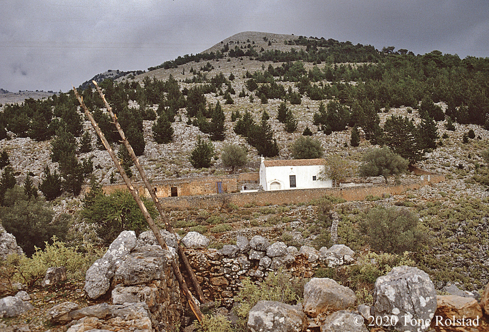In pre-war days the 8th of May – the village saint’s feast day – was claimed to have drawn up to 3000 pilgrims on occasion, from all over west Crete. They came from all the villages of Sfakia, from neighbouring eparchies, even crossing, according to village informants, the Lefka Ori in some numbers by a most difficult route on foot. The feast would last for three days and three nights. The ruined building by the church was earlier used to feed and shelter the guests, and the dancing took place on a flat terrace within the churchyard walls.