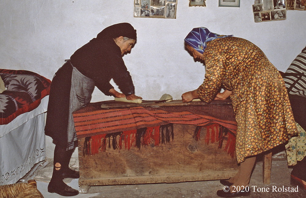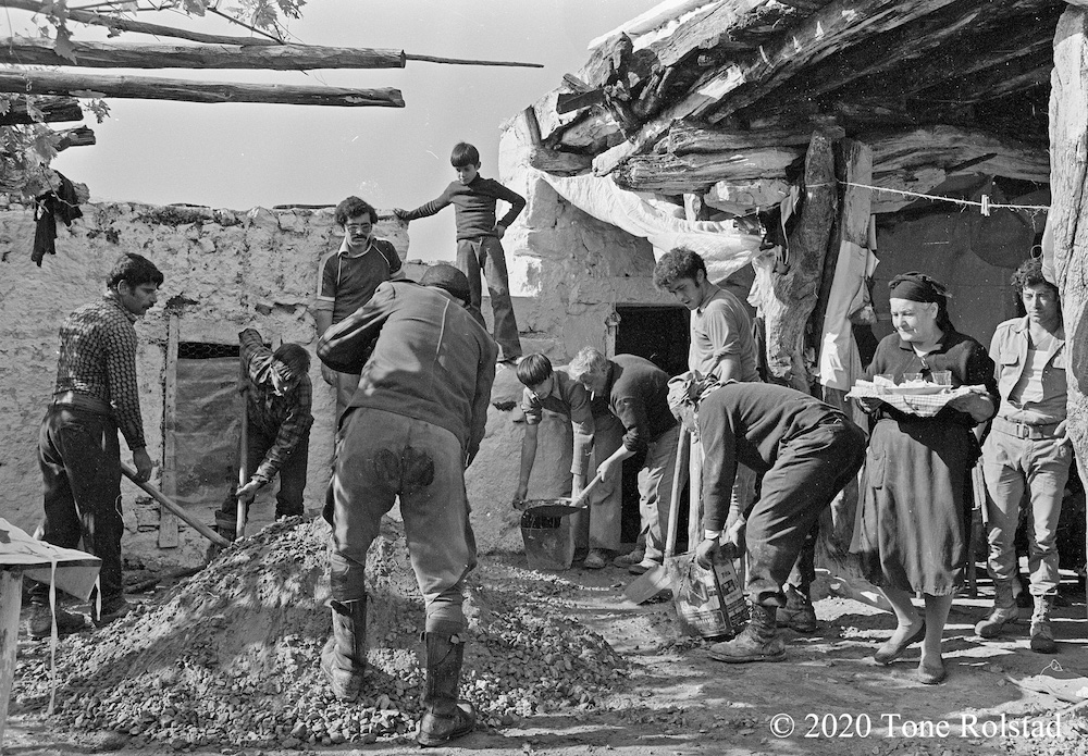 On one occasion a concrete roof was put on one of the houses. This was a job for the men and almost every household was represented. The immediate reward was food and wine during the work, and an enormous meal afterwards. In addition – the possibilty to draw on help from the other households when needed.