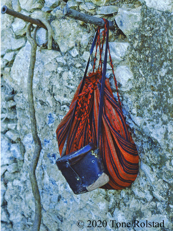 The sakoulis were still in frequent use by the village men and sometimes by the village women when they needed to carry heavier objects. They were elaborately woven with stripes in bright colours. One sometimes saw village men wearing a sakouli in a town, and they were getting increasingly popular with tourists who had started using these as small and colourful sacks.